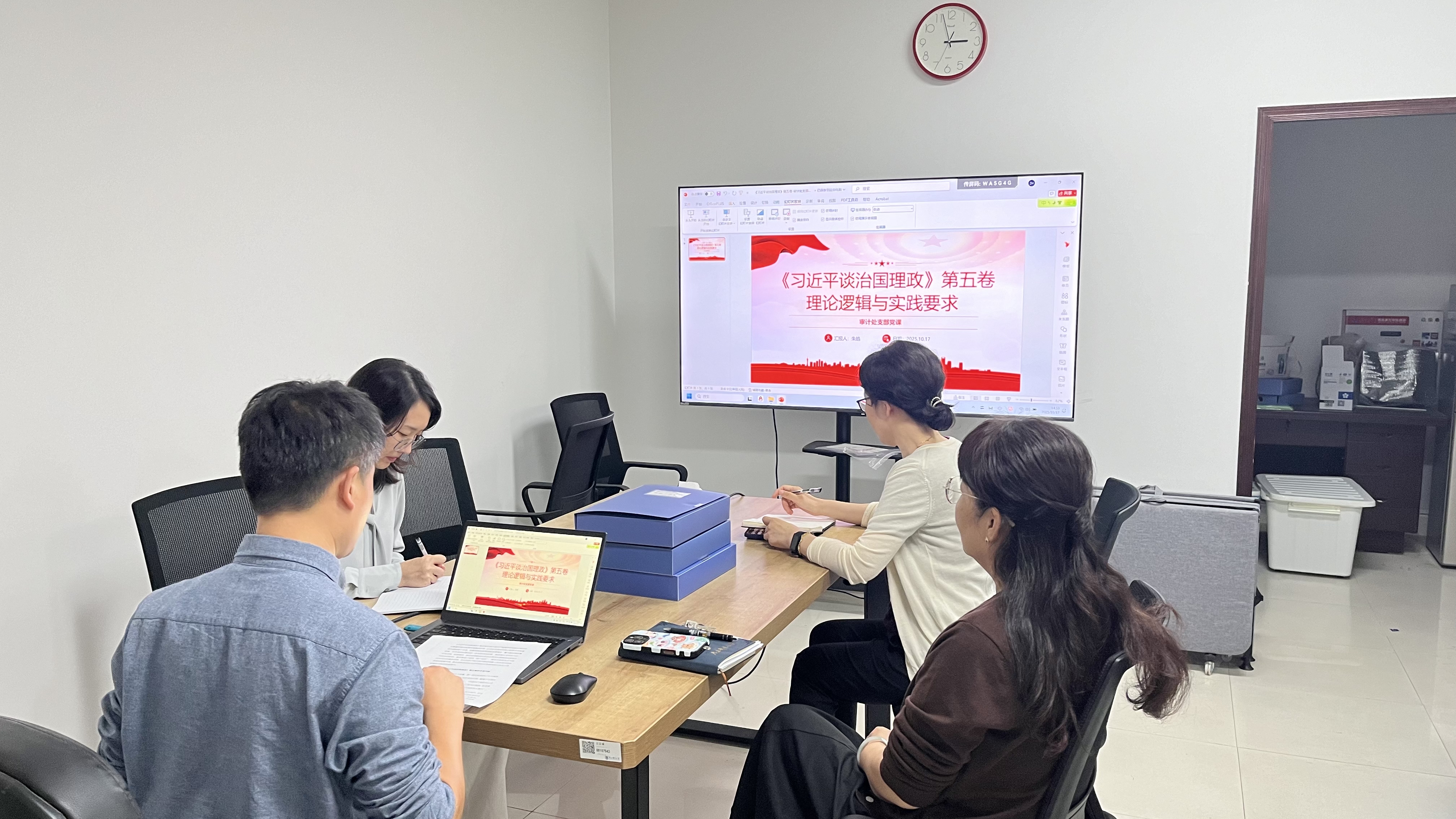 支部书记围绕《习近平谈治国理政》第五卷的出版背景、重大政治意义、理论意义和实践意义展开系统解读,强调这部著作集中展现了马克思主义中国化时代化的最新成果,是引领新时代新征程各项事业发展的根本遵循。授课中,他聚焦专题二、专题四、专题五等核心篇章,结合科研经费审计、经济责任审计、审计整改闭环管理等具体工作,深入阐释了重要论述的理论内涵与实践要求。激励党员干部将理论学习成果转化为履职尽责过硬本领的实践路径。随后,支部党员结合工作实际进行了讨论发言。