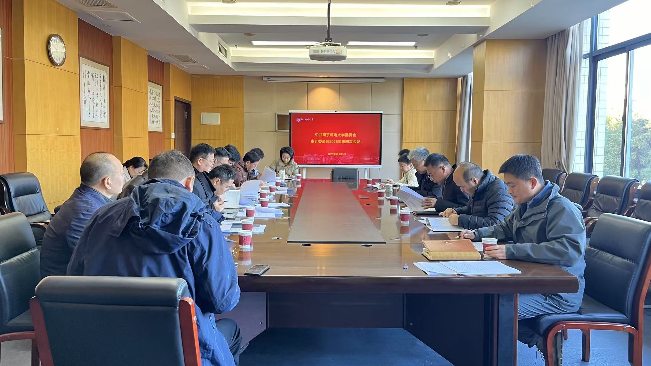12月15日上午,我校召开2025年审计委员会第四次会议。会议由审计委员会主任、校党委书记郭宇锋主持,审计委员会副主任、校长叶美兰,审计委员会副主任、省纪委监委派驻南京邮电大学纪检监察组组长、校党委常委、纪委书记周和林出席会议,审计委员会成员单位负责人及整改责任单位负责人参加会议。